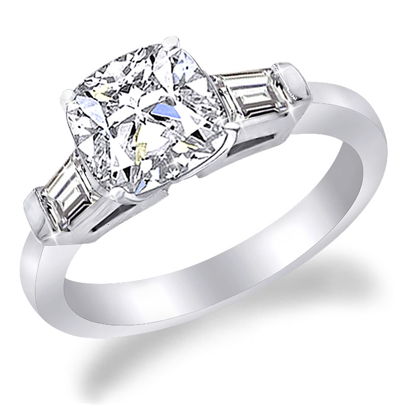Baguettes Diamonds total to 0.35 Carats. Any prong can be placed for any center stone cut.