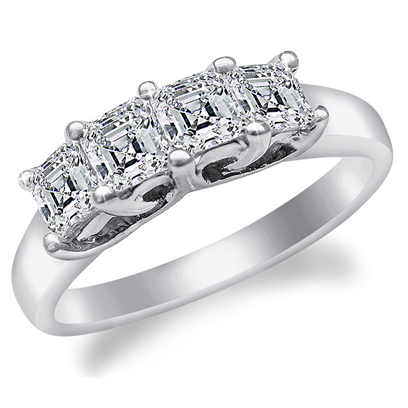 Platinum Band that is matching for Asscher Diamond Ring. 4 asscher cut diamonds totals to 1 Carat. Stones set in common prongs.