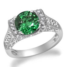 2 Emerald Cut Sapphires on the sides tcw 0.50 and 10 round diamonds accent the shanks tcw 0.30. Center stone is Princess cut Diamond 1 Carat.