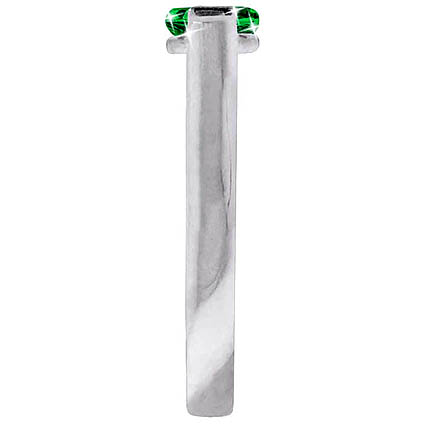 Center setting set on two prongs which are extensions of the shank. A small ring holds the round emerald securely in place.