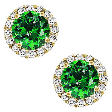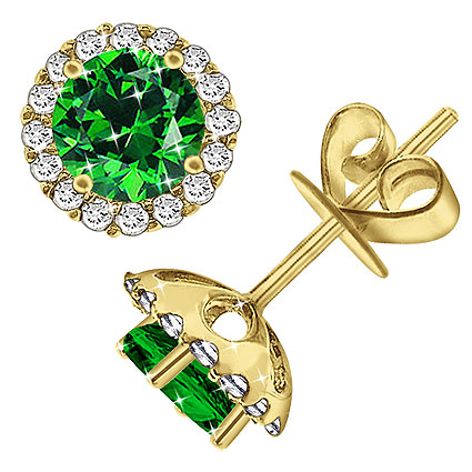 14K Gold Emerald Diamond Stud Earrings. Emeralds totals to 1.50 Carats and Diamonds totals to 0.30 Carats