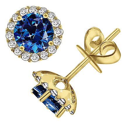 14K Gold Sapphires Diamond Stud Earrings. Emeralds totals to 1.50 Carats and Diamonds totals to 0.30 Carats