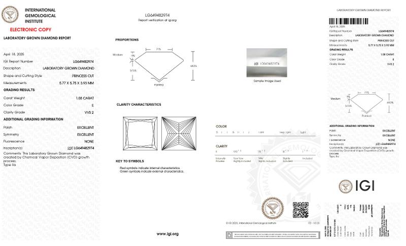 It is colorless to the unaided eye. Only a trained gemologist using special equipment can determine any color difference between a D- and an E-color Lab-Grown Diamond. This is considered a rare Lab-Grown Diamond.