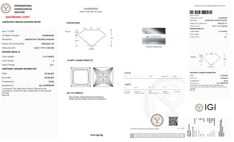 It is colorless to the unaided eye. Only a trained gemologist using special equipment can determine any color difference between a D- and an E-color Lab-Grown Diamond. This is considered a rare Lab-Grown Diamond.